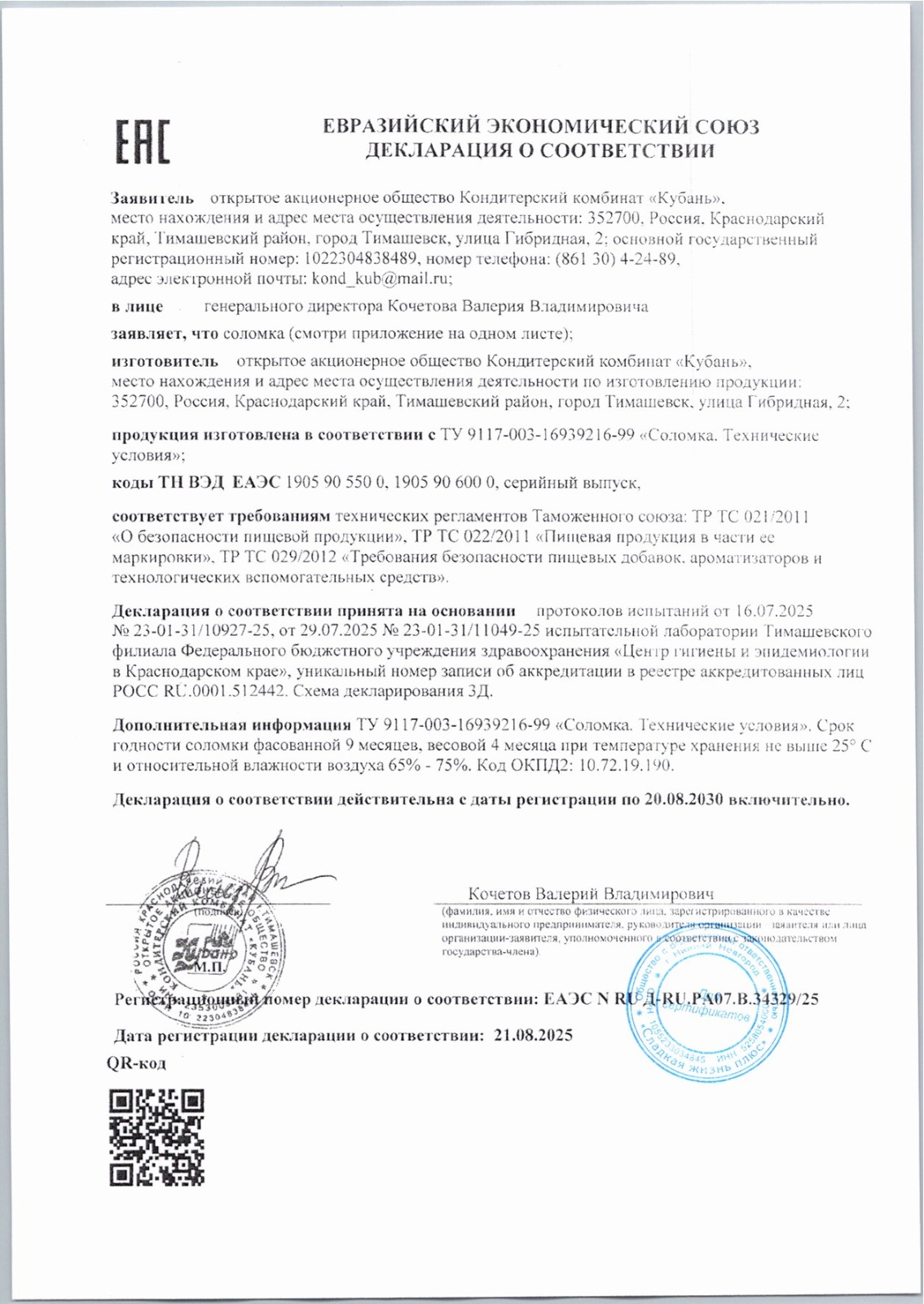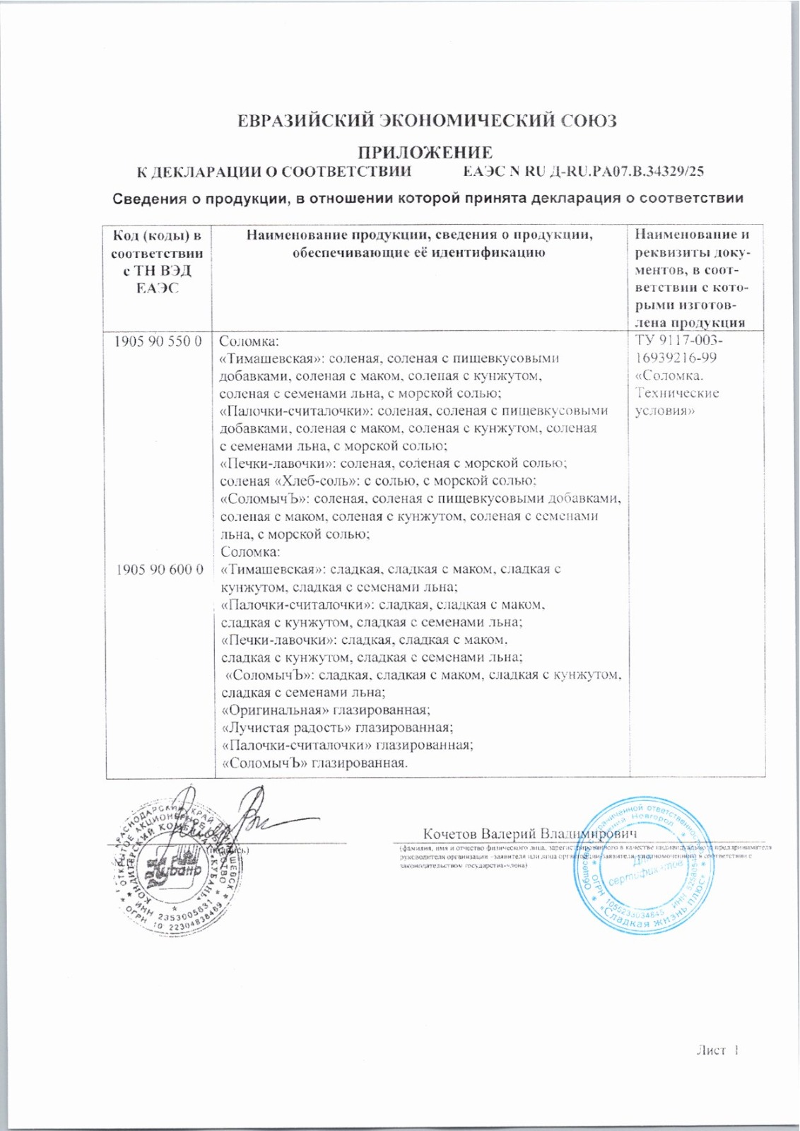 Состав: мука пшеничная (общего назначения, тип М75-23), инвертный сироп (сахар-песок, регулятор кислотности – лимонная кислота), масло растительное, соль поваренная пищевая «Экстра», разрыхлитель теста – гидрокарбонат аммония, дрожжи хлебопекарные прессованные, антиокислитель – пиросульфит натрия.