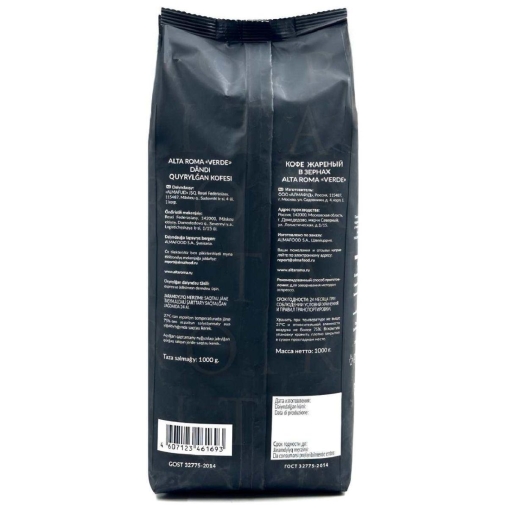 Натуральный жареный кофе в зернах AltaRoma Verde в пакете 1 кг 50% арабика, 50% робуста