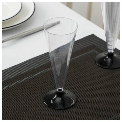 Одноразовый прозрачный бокал для шампанского КОНУС 150 мл PS низкая чёрная ножка 6 шт.