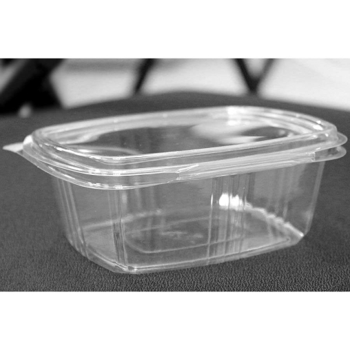 Одноразовый ПЭТ контейнер СКН 143 полуребристый Прозрачный 500 мл с откидной крышкой. Подходит для упаковки и доставки салатов, вторых блюд, десертов, овощей и фруктов. Часто используют при доставке готовых рационов.