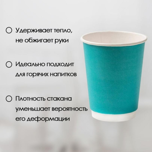 Стакан бумажный двухслойный Бирюзовый 250 мл для горячих напитков