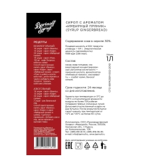 Сироп "Barinoff" Имбирный пряник изготовлен из родниковой воды, сахара, меда, специй и комплекса натуральных ароматизаторов. Обладает янтарным цветом, а его многогранный запоминающийся вкусоаромат раскрывается приятными тонами меда, имбиря, сладкой сдобы и аниса, переходящими в долгое послевкусие. Продукт идеально подходит для добавления в пудинги, фруктовые десерты, выпечку, мороженое и в компоты, кофе, лимонад, коктейли, холодный чай.