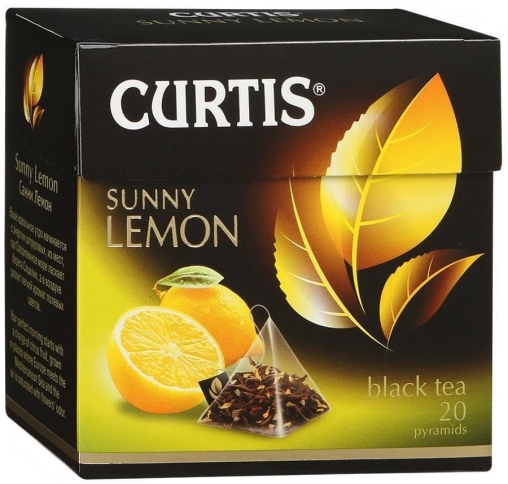 Чёрный чай Curtis Sunny Lemon – черный ароматизированный листовой чай в пирамидках с цедрой цитрусовых, лепестками цветов и ароматом лимона.