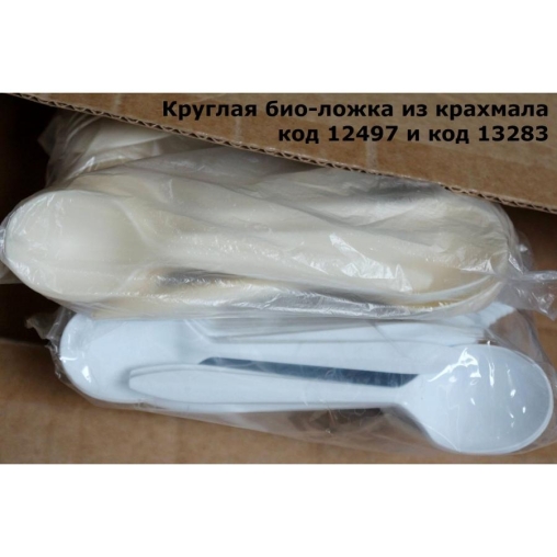 Ложка круглая биоразлагаемая белая из кукурузного крахмала 140 мм ×50 шт.